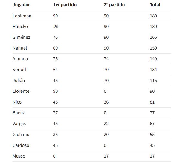 长途飞行也是个问题。例如,马竞原本在上午训练,但周四改到了下午,以便让六名阿根廷球员能够归队。他们在布宜诺斯艾利斯参加了对阵毛里塔尼亚和赞比亚的两场友谊赛,其中阿尔瓦雷斯(115分钟)、纳韦尔(159分钟)和阿尔马达(149分钟)的出场时间都超过了100分钟。巴尔加斯在美国和墨西哥之间奔波,卡多索则在美国,他们也都不得不跨越大西洋。